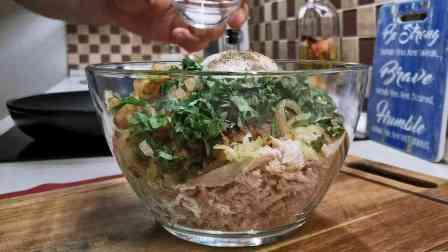 Ну, а затем петрушка, майонез, соль и перец по вкусу. Салат изумительный. Уж больно он яркий на вкус и очень сытный.