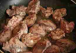 Печень обжарить в растительном масле до готовности. Выложить на салфетку, чтобы стек лишний жир.