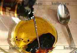Приготовить заправку: в миску вылить оливковое масло, добавить бальзамический уксус.