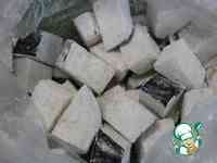 Баклажан очистить (я очистила половину). Порезать кубиком, всыпать в пакет, туда же добавить соль и крахмал.