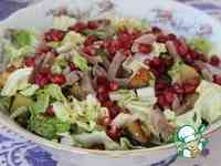 Влить заправку в салат, перемешать. Откорректировать на вкус - он должен быть кисло-сладким. Дать постоять минут 10. Подавать.