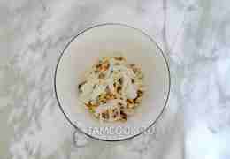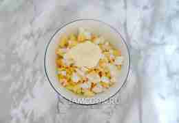 Салат заправьте майонезом, посолите и поперчите.