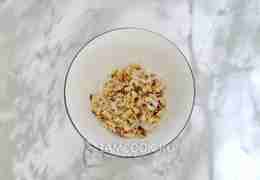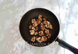 Грецкие орехи прокалите на горячей сухой сковороде 3-4 минуты, перемешивая.