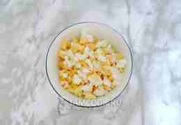 Остывшие яйца очистите и мелко нарежьте.