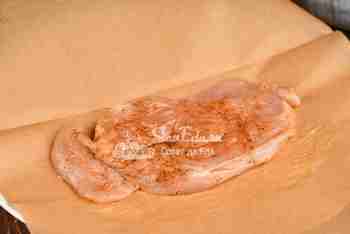 Филе куриной грудки разрезаем вдоль пополам, перекладываем в пакет и слегка отбиваем. Посыпаем кусочки смесью перцев (дает хороший цвет, вкус) и солью с 2 сторон.