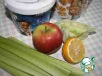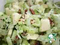 Так же нарезаем салат. Смешиваем йогурт с лимонным соком и медом. Орешки измельчаем.