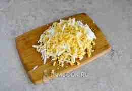 Яйца почистите и натрите на крупной терке или мелко нарежьте.