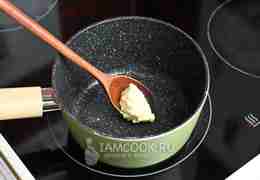Итак, в кастрюльке с толстым дном растопите кусочек сливочного масла.