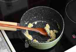 Постоянно помешивая, обжарьте муку с маслом несколько секунд.