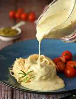 Перелейте соус в соусник и подавайте к столу. Этот соус подаётся в горячем/тёплом виде.