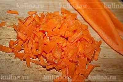 Морковь и репчатый лук нашинковать. Иногда итальянцы добавляют в соус стебель сельдерея. Его также надо мелко нарезать иобжарить с овощами.