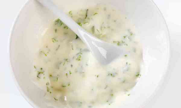 Заправку Ранч можно хранить готовой в холодильнике, с закрытой крышкой, до 10 дней. В морозильнике заправку можно хранить до 2 месяцев.