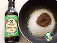На сковороду насыпьте сахар, влейте соевый соус "Киккоман" и поставьте на плиту