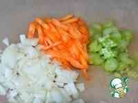 Сначала готовим зажарку. Овощи моем, чистим. Морковь режем соломкой, лук мелкими кубиками, сельдерей полосками.