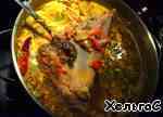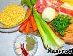 разварится, вынем его из супа и уберем кости, нарежем мясо и положим обратно в суп. В готовый суп добавить чайную ложку