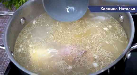 Для начала отварим мясо. В кастрюлю кладем мясо на кости, у меня говядина. Ставим варить на огонь. Я, первую воду сливаю после того, как мясо покипит минут 5-7. Затем мясо промываю, заливаю