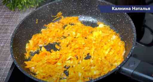 обжариваем до полупрозрачности, добавляем морковь. Жарим все вместе пару минут. Теперь берем половник бульона и вливаем к луку с морковью и тушим до готовности овощей.