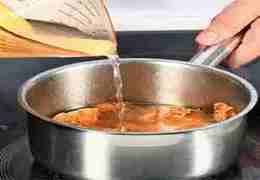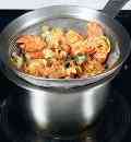 Панцири должны стать ярко-оранжевого цвета. Уменьшить огонь, влить вино и готовить, пока вся жидкость не выпарится.