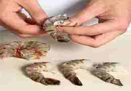 Креветки очистить от панцирей и голов. Сделать вдоль спинки неглубокий надрез и удалить кишечную вену.