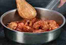 Панцири и головы промыть, обсушить и обжарить в глубоком сотейнике в 2 ст. л. сильно разогретого масла, 4 мин.