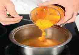 Добавить тыквенное пюре, сливки, соль и перец. Довести до кипения и готовить на небольшом огне 10 мин.