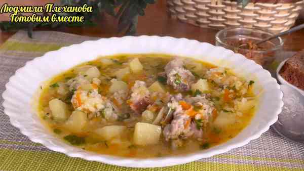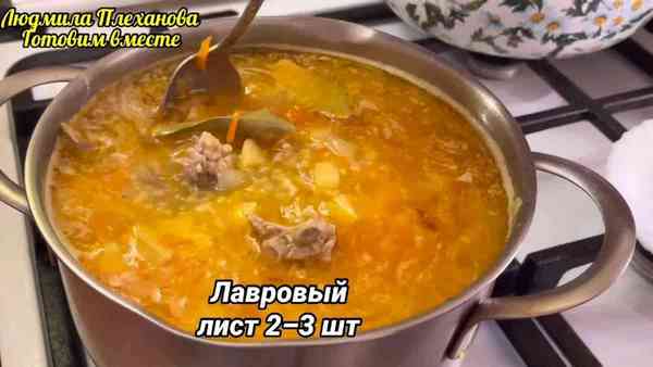 Наш наваристый густой суп из пшена, мяса и сала готов!