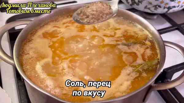 Варим наш суп минут 10 с момента закипания, чтобы пшено уже почти приготовилась.
