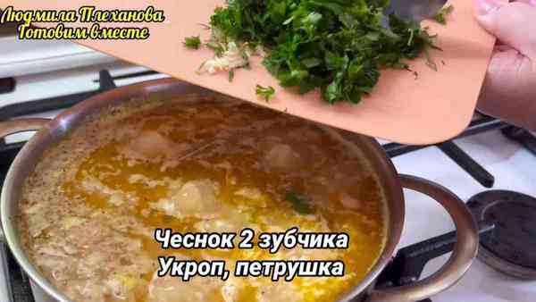 А перед тем как выключить плиту, я добавляю несколько зубчиков измельченного чеснока и зелень.