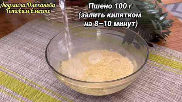 Пшено я уже хорошо промыла, и теперь заливаю кипятком на 7 - 10 минут, затем сливаю воду.