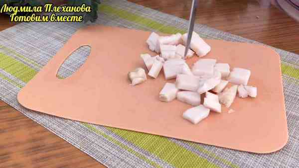 Также нам потребуется небольшой кусочек сала, который нарезаем на маленькие кубики.