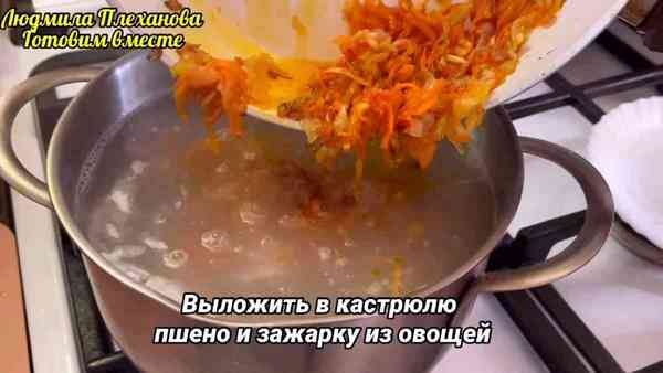 выкладываем пшено, и я сразу же выкладываю зажарку.