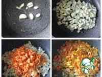 чтобы он отдал свой аромат маслу. Чеснок убираем с сторону на сковороде. Выкладываем мелко резанный лук и золотим его до мягкости.