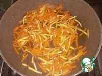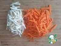 Вымыть и очистить морковь и корень (я петрушки не нашла, у меня корень сельдерея). Нашинковать соломкой.