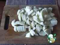 По рецепту суп предлагается готовить в горшочках, но я готовила в одном большом горшке. Картофель очистить и нарезать ломтиками.