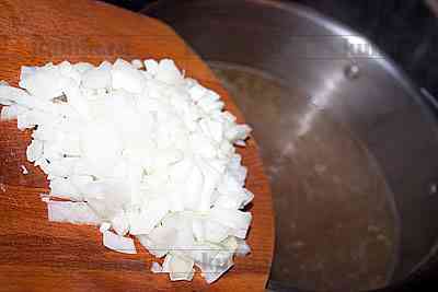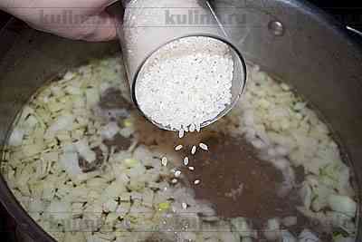 Репчатый лук нарезать и выложить в суп, даем повариться.
