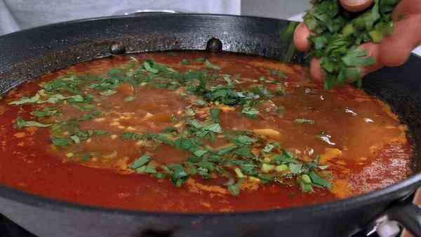 В самом конце, когда все уже сварилось, обязательно выдавливаем чеснок прессом и добавляем приличное количество зелени, лучше всего кинзы.