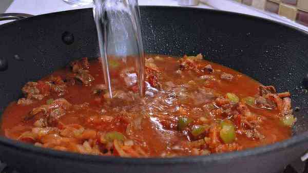 Затем заливаем все горячей водой, доводим до кипения, накрываем крышкой и варим на слабом огне около 40 минут.
