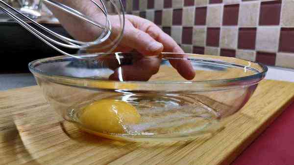 За это время делаем домашнюю лапшу. Лапша у нас яичная. Вбиваем в небольшую миску яйцо комнатной температуры.