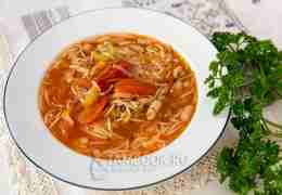 Если необходимо, добавьте воды, чтобы суп стал жиже. Солим, перчим по вкусу.
