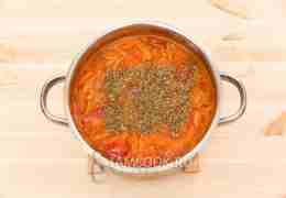 Снимаем кастрюлю с огня. Добавим прованские травы. Дадим овощному супу с фасолью и макаронами настояться минут 10.