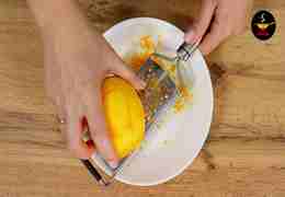 С одного крупного апельсина снимаем цедру (только оранжевую часть, так как белая горчит).