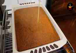 Для выпечки используем прямоугольную форму размером 23х33 см. Дно обязательно застилаем бумагой для выпечки – так сочный пирог точно не прилипнет.