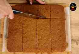 а затем перекладываем его доску. Нарезаем на аккуратные порционные квадраты.