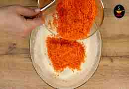 Смешиваем все сухие ингредиенты и высыпаем сухую смесь в морковно-яичную массу. Перемешиваем до однородности.