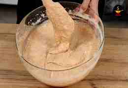 Тесто для морковного пирога по консистенции получается средней густоты, тягучее и очень пышное.