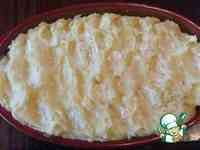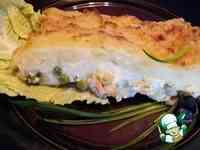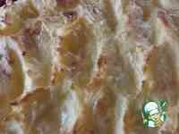 На соус выложить слой картофельного пюре. Ложкой обозначить на нем "волны", или подобие рыбной чешуи. Слегка обмазать верх сметаной.