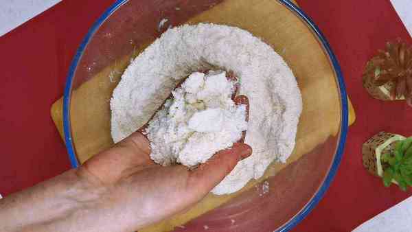 Затем вбиваем туда холодное яйцо. И снова все перетираем в крошку. Тесто полностью готово и на это уходит не более пяти минут.