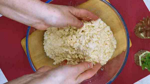 Итак, сначала собираем тесто. Говорю "собираем", потому что оно без вымешивания, т.е. сухое и сыпучее.