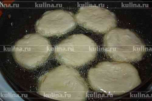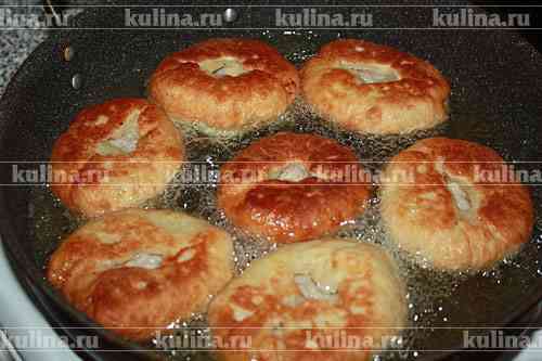 В сотейнике разогреть масло, жарить беляши, положив их в масло