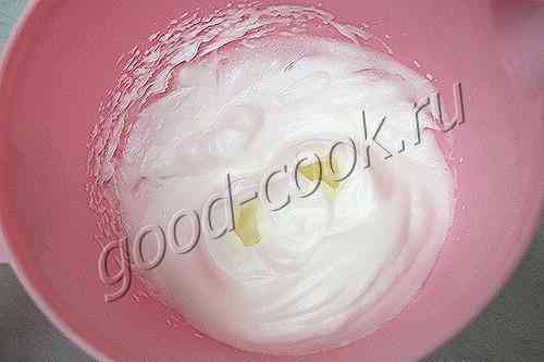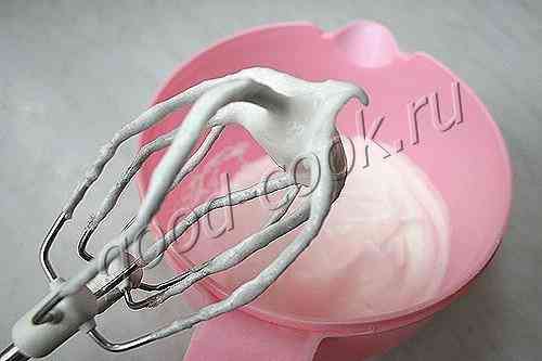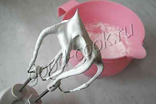 того, как она оторвётся от ложки, острый кончик загнётся вниз. После получения такой пены можно начинать вводить мелкий сахар или сахарную пудру.